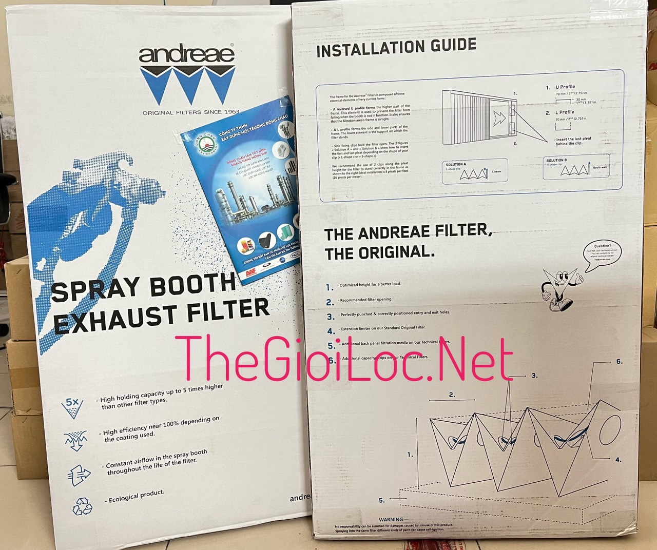 Bao bì sản phẩm giấy lọc 2 lớp Andreae dùng cho buồng phun sơn, lọc bụi sơn khô